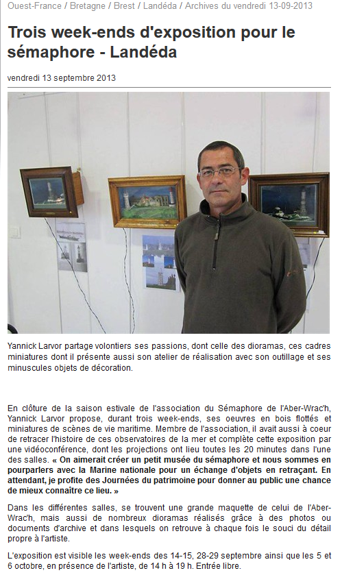 Yannick Larvor, exposera au sémaphore, pendant 3 week-ends, ses dioramas et ses créations en bois flotté.
